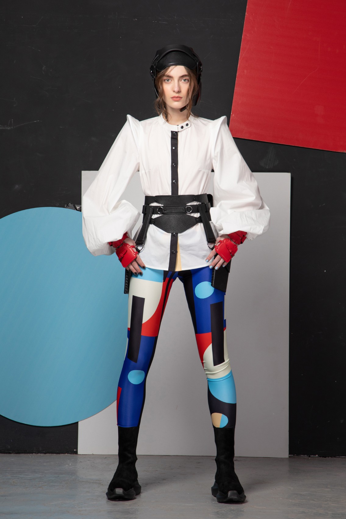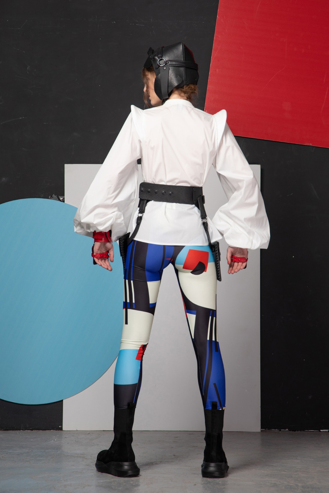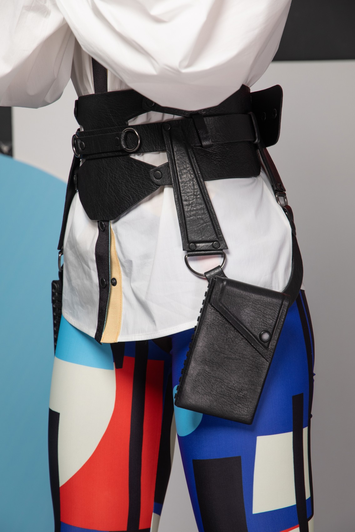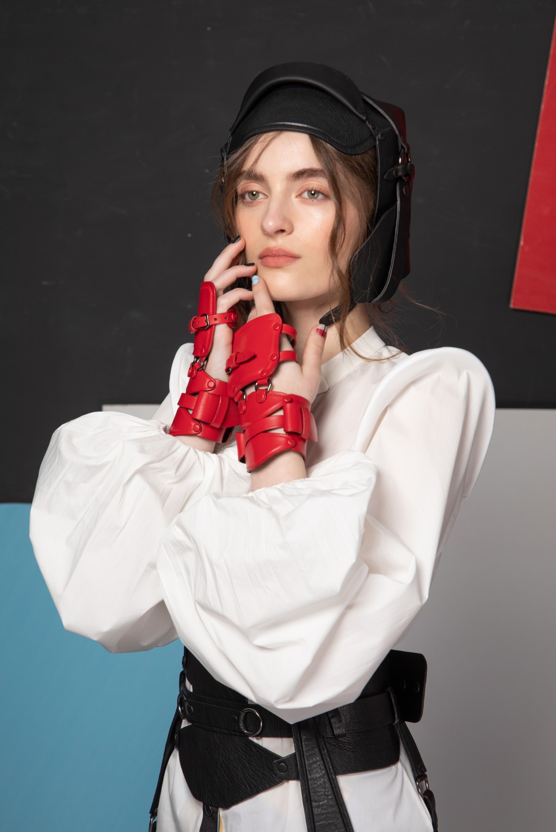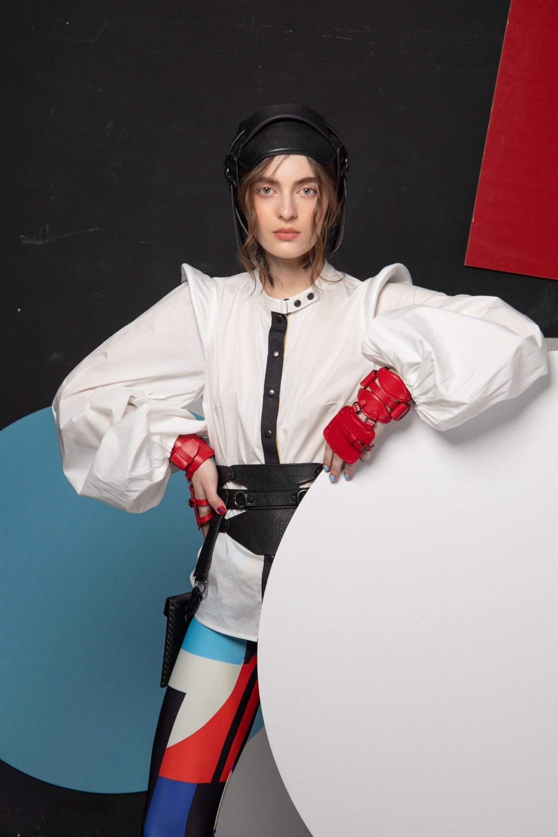 Cotton shirt with hyperbolic pad balloon sleeve (The leather corset belt is not included)